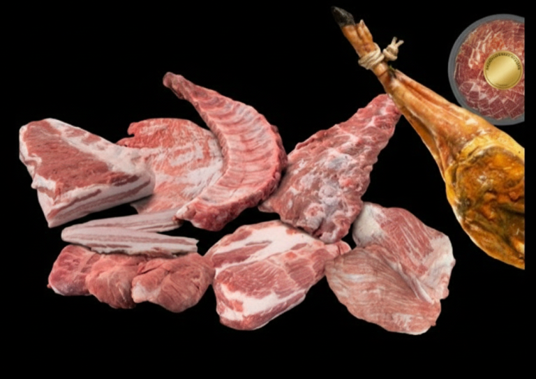 Selección premium de embutidos curados y carne fresca ibérica de origen España.